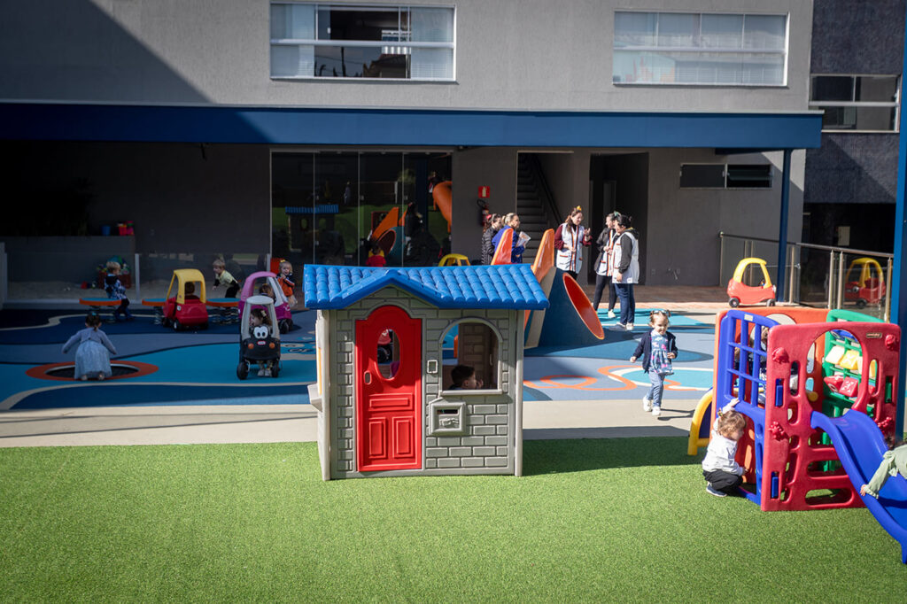 Nossos espaços são planejados com sensibilidade para acolher a curiosidade natural das crianças, respeitando sua maneira própria de ver, sentir e se expressar. Salas equipadas, ambientes lúdicos e áreas específicas para diferentes atividades favorecem a experimentação, a interação e o desenvolvimento motor, emocional e cognitivo. Brinquedos não estruturados, propostas livres fazem parte das áreas de convivência para que os desafios surjam com o objetivos de administramos conflitos fazendo um exercício de simulação de problemas a fim de treinarmos habilidades relacionadas à solução de conflitos.